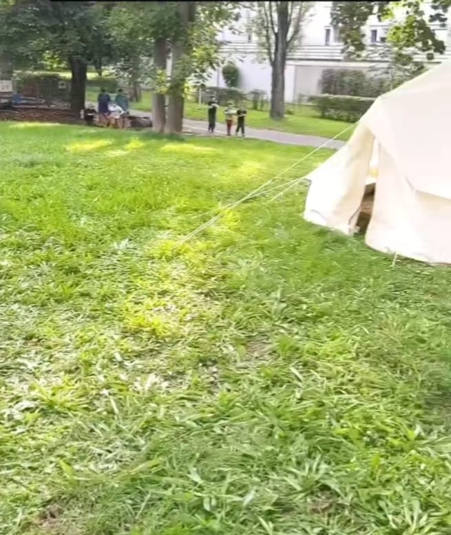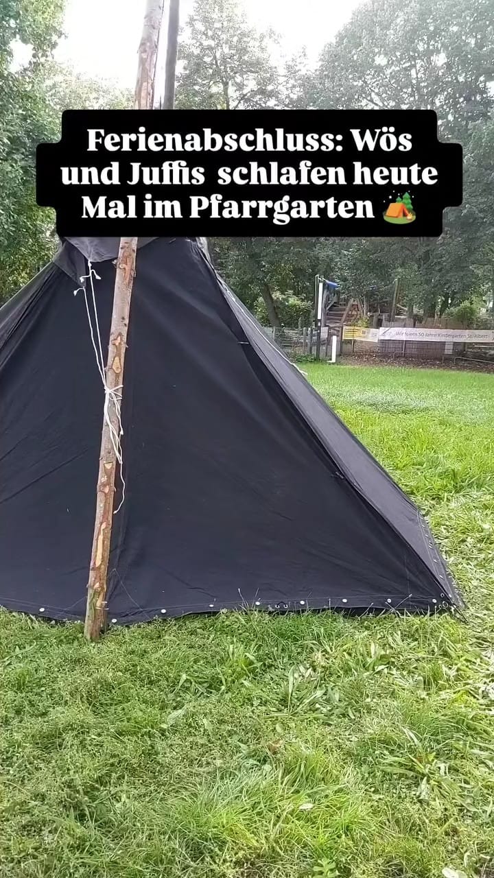 Wir haben uns als gemeinsame Gruppe der Wölflinge und Jungpfadfinder*innen – die Wuffis – am letzten Wochenende der Ferien für eine Übernachtung bei unseren Gruppenräumen getroffen. Dabei haben wir auf der Wiese vor der Kirche zwei weiße und ein schwarzes Zelt aufgebaut und Lagerfeuer gemacht.